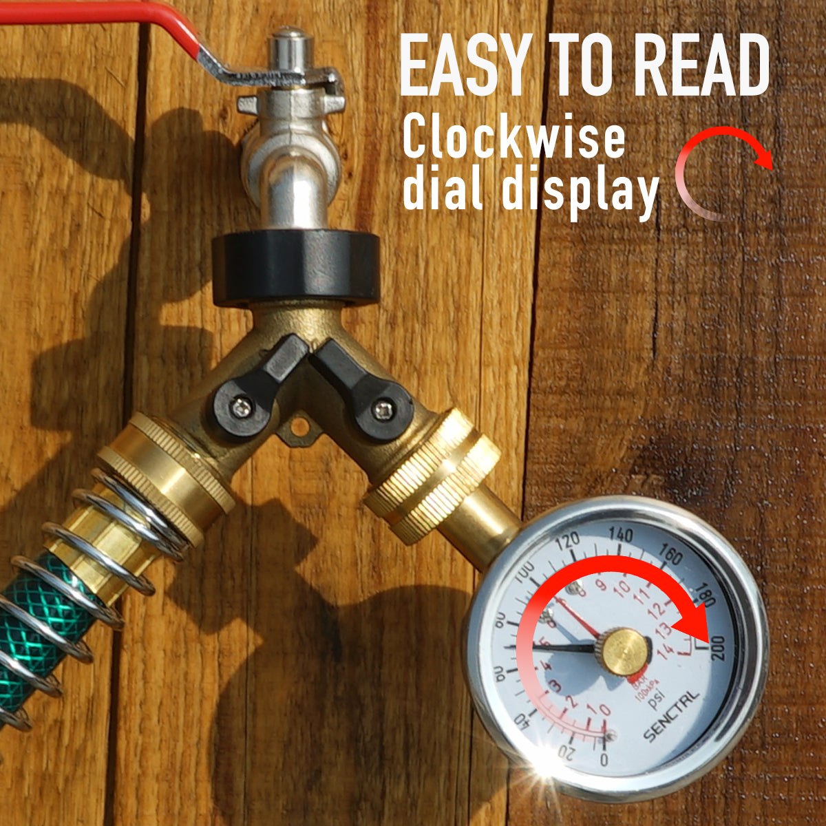 The SENCTRL water pressure gauges have stainless steel or low-lead brass wetted parts for use on applications involving drinking water. The red max pointer allow you to record spikes in pressure when you are away from the gauge. Adopt 3/4" hose connection which can be easily attaches to outdoor hose bibb or water heater drain.